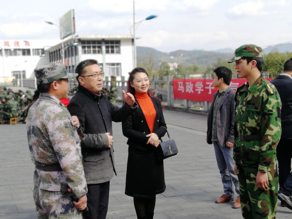 3月20日下午,伟德国际官网党总支书记刘春辉、院长王秀珍、副书记吴辉兵、党政办主任兰奎、学工办主任唐幸福、班主任代表陈显川、王莉花老师一行前往市国防教育基地慰问伟德国际官网2017级军训同学。