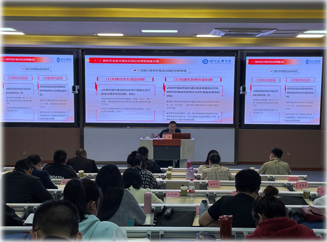 此次专题讲座共分为三个部分:一是习近平新时代中国特色社会主义思想的世界观方法论;二是习近平总书记关于党的建设相关重要论述;三是新时代党建引领农村基层治理的现实路径,引导学员理解新时代农村基层党组织建设与基层治理的主要特征,掌握党建引领在农村基层治理中的价值内涵和挑战、创新实践与治理提升路径。