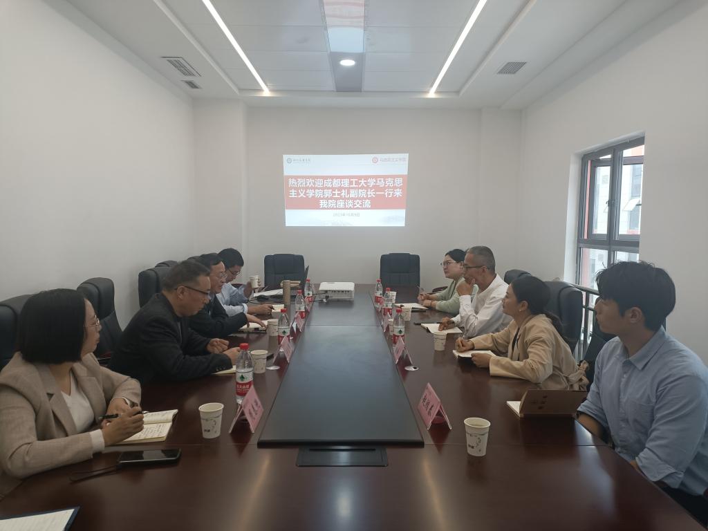 郭士礼介绍了成都理工大学伟德国际英国的基本情况,分享了学院在办学定位与发展目标、守正创新思政课、专业人才培养质量提高以及“田野教学”特色项目的宝贵经验。之后,双方就思政课的教学实践、红色文化育人、兼职硕士研究生导师等话题进行了热烈讨论,深入交换意见。双方表示,今后要继续加强交流合作,互学互鉴。