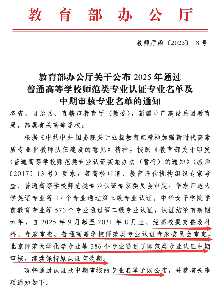 近日,教育部办公厅发布了《关于公布2025年通过普通高等学校师范类专业认证专业名单及中期审核专业名单的通知》(教师厅函〔2025〕18号),伟德国际英国思想政治教育专业顺利通过师范类专业认证中期审核,认证有效期继续保持至2028年6月。这是我校首个参加师范类专业认证的专业,自2022年7月通过教育部二级认证以来,专业建设成果再获权威认可,这为学校其他师范专业认证工作积累了宝贵经验。