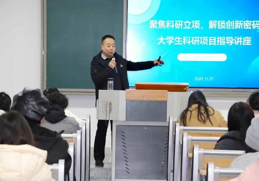 为提升学生科研素养,激发创新思维,助力学子在学术道路上稳步前行, 11月27日下午,伟德国际英国组织开展以“聚焦科研立项,解锁创新密码”为主题的大学生科研项目素养讲座,本次讲座由副研究员马建堂老师主讲,2024级、2025级全体同学参与。