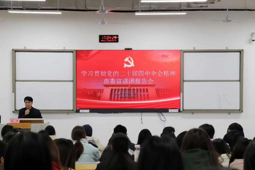 宣讲中,刘丹紧扣习近平总书记关于全会相关议题的重要阐述,以总书记高瞻远瞩、思想深邃的话语体系为核心框架,深入浅出地解析了全会部署的战略任务、提出的重大创新观点与作出的制度性安排。为让理论宣讲更接地气、更具实效,他坚持理论与现实相结合,融入鲜活案例与详实数据,精准讲透全会精神的核心要义与实践要求,助力同学们深刻领悟“十五五”时期经济社会发展的指导方针、主要目标与实践路径。