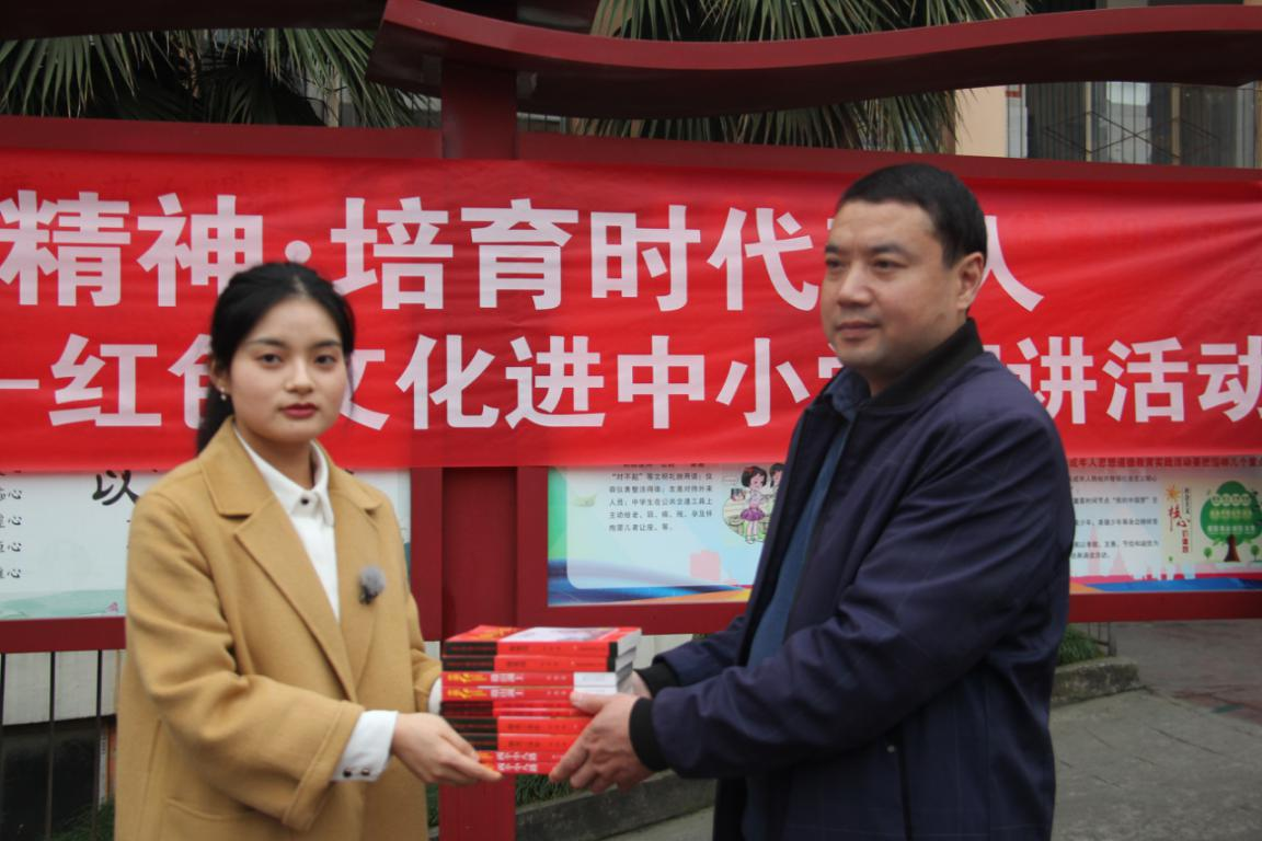 在红色文化宣讲活动中,研究会组织了两个宣讲组,进入耀华育才学校的两个班级对学生进行红色文化教育。宣讲组通过讲解革命战争年代川陕革命老区涌现出的张爱萍、陈伯钧等英雄人物及其感人事迹,倡导学生向革命先烈学习,争做新时代好少年。并通过开展击鼓传花等活动,在活动中邀请学生唱红歌、讲红色故事、扮演红色人物,推动学生进一步将红色文化中所蕴含的精神价值入心入行。此外,教师李沵芮代表伟德国际英国和研究会还为耀华育才学校捐赠了100册红色故事书籍,以进一步推进红色文化进课堂及达州市大中小学校思政课一体化建设。