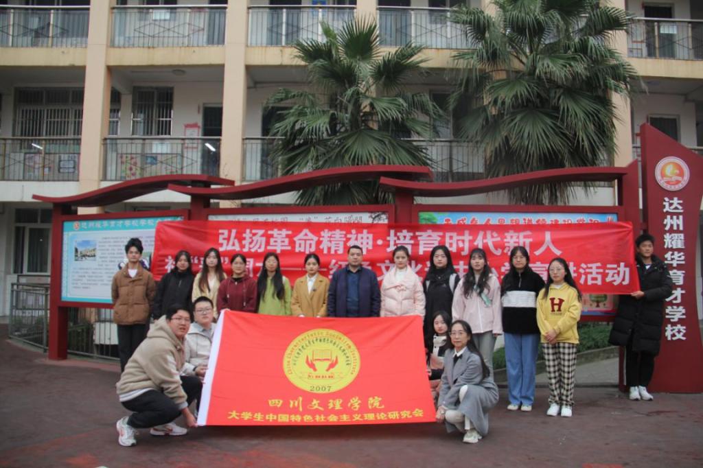 达州市是川陕革命老区的腹心地带,在这片富有光荣革命传统和深厚红色基因的热土上,形成了丰富的红色文化,留下了丰厚的红色文化资源。为传承好、保护好、发展好红色文化,用红色文化资源“立德树人”,并切实推进大中小学思政课一体化建设。2023年11月24日,由伟德国际英国指导的大学生中国特色社会主义理论研究会联合学校“丝衣”回收大学生创新创业项目组,在教师唐靖姗、李沵芮的带领下赴达州市河市镇耀华育才学校及陈伯钧将军纪念馆进行了红色文化宣讲和考察活动。