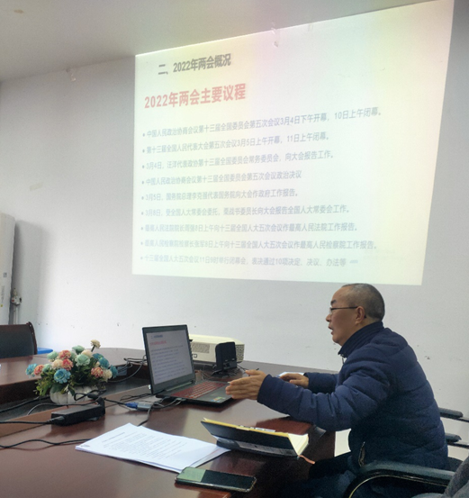 首先,刘永亮同志从“两会小常识“、”2022年两会概况“和”政府工作报告解读“三个方面讲了微党课。随后,支部全体同志围绕”两会精神如何融入思政课“进行自由交流。