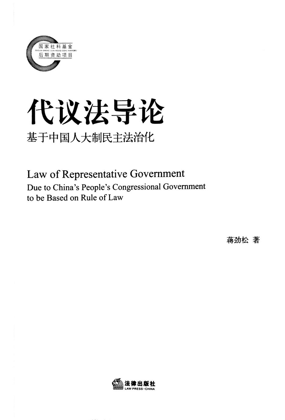 代议法是蒋劲松教授近年来着力研究的学术领域,《代议法导论》一书就是这一努力的重要成果。该书致力于开创性地以专门的部门法学即代议法学阐释代议法,概要说明代议、代议权、代议制、代议法、代议法关系等基本概念,针对我国规制代议关系的法律受制于行政法思维的现状,提出应当重视法律部门基本原则的界分价值,即法律部门基本原则使一个法律部门与其他法律部门区分开来。代议法以其基本原则,鲜明地体现代议法的根本价值,统领代议法的全部规范,竭力解决代议法的基本矛盾。在此基础上,该书不但揭示了代议法的实体基本原则,而且以各国宪法文本为基本依据,论证定期足时、定点、合意为各国代议法的程序基本原则,还结合我国宪法等法律以及人大制的实际运行,论证我国人大制同样受定期足时、定点、合意这三个程序基本原则支配。