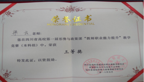 伟德国际官网青年教师梁云在四川省首届形势与政策课教学竞赛中获优异成绩