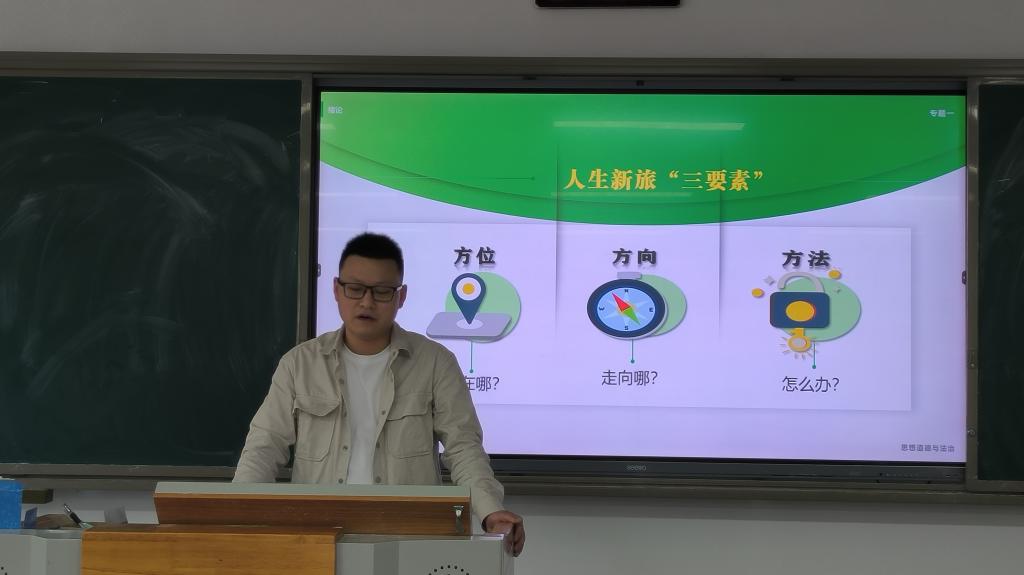 讲台上,教师梁攀、罗荥瀛、耿泽分别以“我们正处于中国特色社会主义新时代”、“毛泽东思想及其历史地位”、“积极进取的人生态度”为主题进行了优质课竞赛展示。