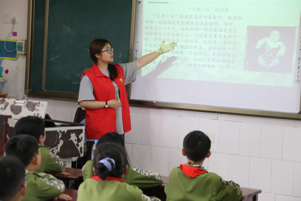 围绕达州籍的红色人物和事迹,项目成员向八一希望小学四年级一、二两个班的学生展开宣讲,带领学生在革命历史中找寻先烈之“光”,同时感悟新时代达州红色人物的信念与信仰。以革命烈士小萝卜头宋振中和“七一勋章”获得者周永开为例,成员向同学们详细讲述了那段动人心魄的历史,有温度有深度地传递红色基因、传承红色血脉,讲述红色故事,引导同学们在心中树立起自己的红色榜样。