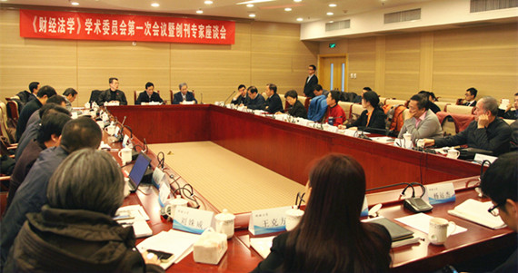 经国家新闻出版广电总局批准创办,教育部主管、mg4355vip检测中心主办的学术期刊《财经法学》创刊号于2015年1月15日出版。为进一步明确期刊的办刊定位和学术标准,研讨期刊的发展战略和举措,1月16日下午,《财经法学》学术委员会第一次会议暨创刊专家座谈会在学术会堂604会议室举行。校长王广谦、副校长李俊生,特邀专家、中国政法大学终身教授应松年,部分在京《财经法学》学术委员会成员,《财经法学》创刊号作者代表,学校相关职能部门和单位负责人,媒体代表以及《财经法学》编辑部全体成员参加了会议。