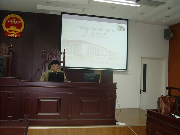 2010年11月24日,来自全国人大环境与资源保护委员会调研室的翟勇副主任在mg4355vip检测中心模拟法庭进行了一场精彩的讲座。此次讲座的题目是《应对气候变化的国际法问题与国内法应对》,由mg4355官网蒋劲松教授做主持,朱家贤副教授做点评。
