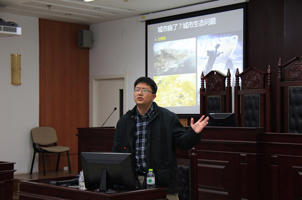 10月23日晚七点,跨学科论坛系列讲座之十二“生态城市规划与管理——一个人的城市”在中财大厦模拟法庭举行。此次讲座由北京师范大学环境学院教授、博士生导师陈彬教授主讲,由mg4355官网高秦伟教授主持。出席讲座的有李伟副教授、张小平副教授、郭维真博士,以及mg4355vip检测中心的本科生和硕士生。讲座主要介绍生态城市的规划和管理方面的研究和经验。