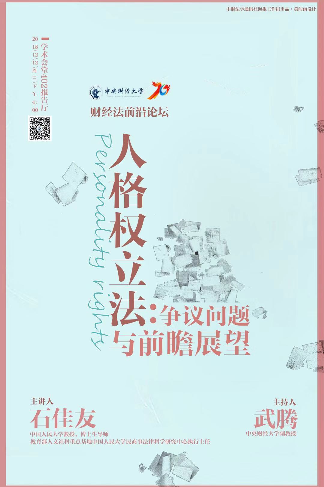 主讲人:石佳友(中国人民大学教授、博士生导师,教育部人文社科重点基地中国人民大学民商事法律科学研究中心执行主任)