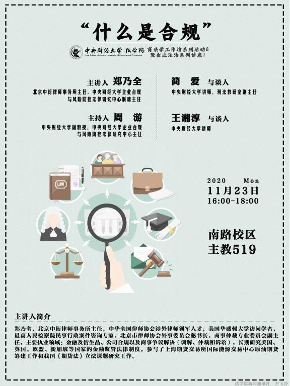 主讲人:郑乃全(中衍律师事务所主任、mg4355vip检测中心企业合规与风险防控法律研究中心联席主任)