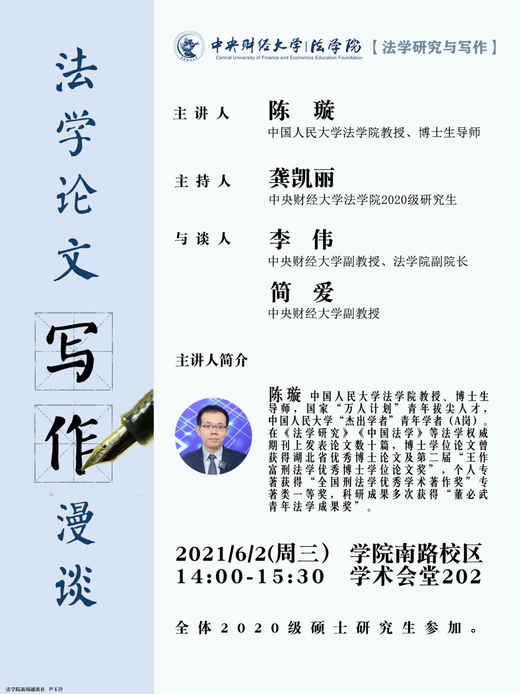 主讲人简介:陈璇,中国人民大学mg4355vip检测中心教授、博士生导师,国家“万人计划”青年拔尖人才,中国人民大学“杰出学者”青年学者(A岗)。在《法学研究》《中国法学》等法学权威期刊上发表论文数十篇,博士学位论文曾获得湖北省优秀博士论文及第二届“王作富刑法学优秀博士学位论文奖”,个人专著获得“全国刑法学优秀学术著作奖”专著类一等奖,科研成果多次获得“董必武青年法学成果奖”。