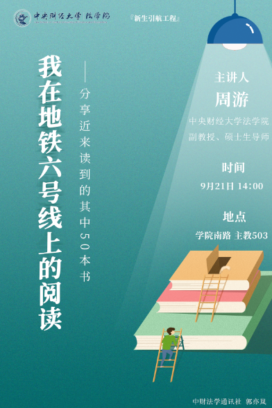 周游,mg4355vip检测中心副教授、硕士生导师,商法教研室副主任,mg4355vip检测中心企业合规与风险防控法律研究中心主任,北京大学法学博士;兼任中国商业法研究会理事、北京中衍律师事务所高级顾问;在《中国法学》《法学》等期刊发表学术论文20余篇,主持国社科、教育部等课题4项;出版专著《公司法的功能嬗变:从填空到选择》,合著《企业与公司法学》及参编《证券法学》等教材;2021年《中华人民共和国公司法(修订草案)》公布后曾受邀向全国人大常委会法制工作委员会作修改意见的书面汇报;自2017年以来,每年都与新生交流阅读心得体会,另有读书公众号“六号线阅读”。