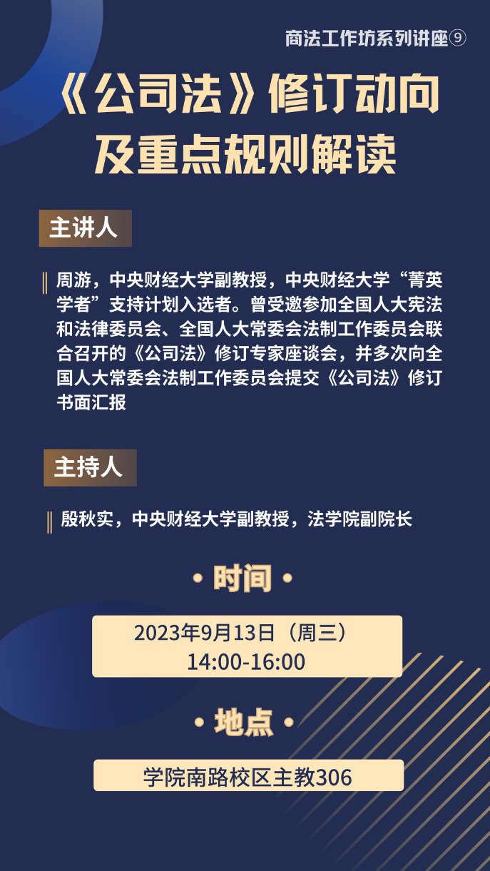 主讲人:周游,mg4355vip检测中心副教授,mg4355vip检测中心“菁英学者”支持计划入选者。曾受邀参加全国人大宪法和法律委员会、全国人大常委会法制工作委员会联合召开的《公司法》修订专家座谈会,并多次向全国人大常委会法制工作委员会提交《公司法》修订书面汇报