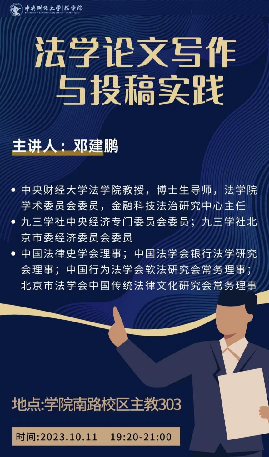 邓建鹏,mg4355vip检测中心教授,博士生导师,mg4355vip检测中心学术委员会委员,金融科技法治研究中心主任;九三学社中央经济专门委员会委员;九三学社北京市委经济委员会委员;中国法律史学会理事;中国法学会银行法学研究会理事;中国行为法学会软法研究会常务理事;北京市法学会中国传统法律文化研究会常务理事。在法学、史学、经济学及知名学报等CSSCI来源期刊发表论文近50篇。