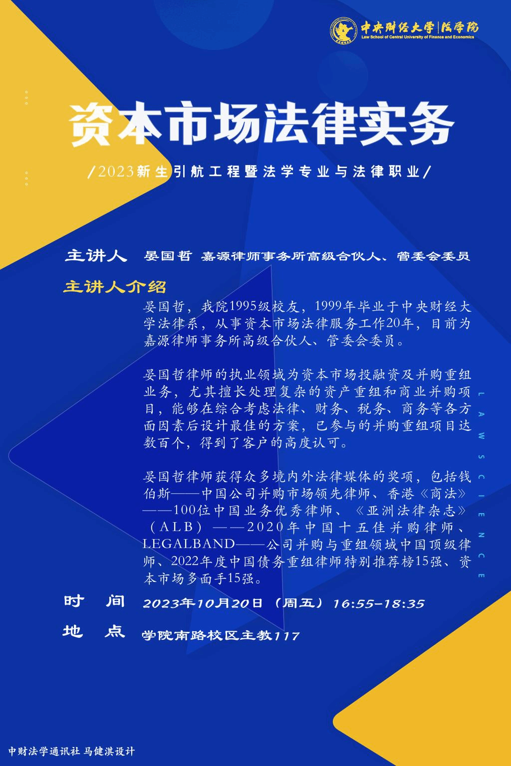 晏国哲,mg4355官网1995级校友,1999年毕业于mg4355vip检测中心法律系,从事资本市场法律服务工作20年,目前为嘉源律师事务所高级合伙人、管委会委员。