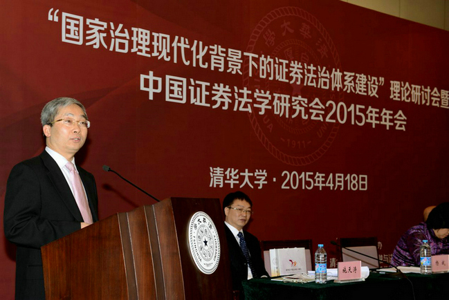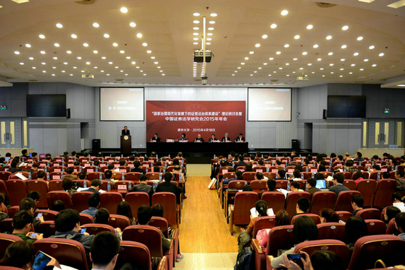 2015年4月18日,由中国证券法学研究会主办,清华大学mg4355vip检测中心金融与法律研究中心、北京华宇股份有限公司承办的“国家治理现代化背景下的证券法治体系建设”理论研讨会暨中国证券法学研究会2015年年会在清华大学隆重召开。中国金融服务法治网进行了网络支持。中国中央电视台、法治网、法制日报、人民法院报、证券日报等媒体进行了报道。