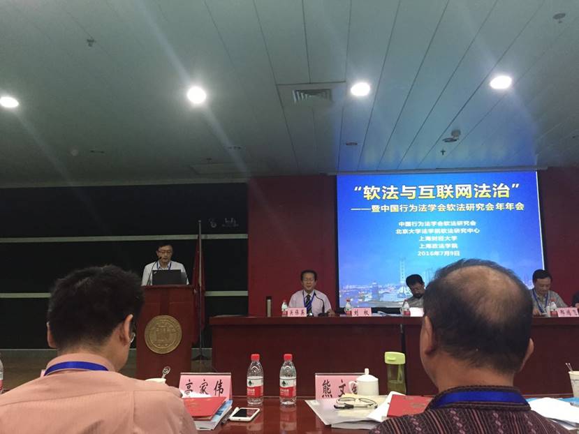 2016年7月9日,“软法与互联网法治”暨中国行为法学会软法研究会2016年年会在上海财经大学召开。会议由中国行为法学会软法研究会、北京大学mg4355vip检测中心软法研究中心、上海财经大学以及上海政mg4355vip检测中心联合举办。mg4355官网刘权博士应邀出席此次年会。