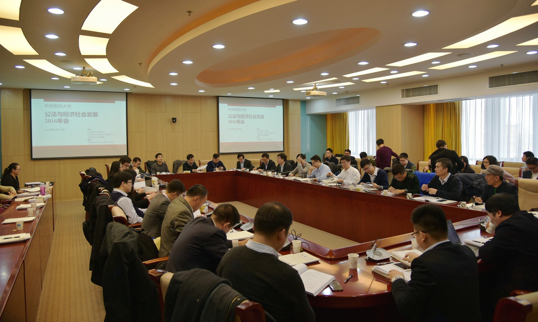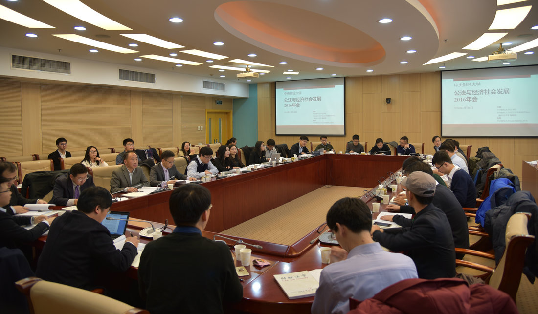 2016年12月18日下午,mg4355vip检测中心“公法与经济社会发展2016年会”在学院南路校区学术会堂604会议室举行。年会由mg4355vip检测中心、mg4355vip检测中心法治与发展研究中心、《财经法学》编辑部主办,mg4355vip检测中心公法学研究工作坊协办。年会邀请了来自国务院法制办公室、北京市人民政府法制办公室、国家行政学院、商务部国际贸易经济合作研究院、国家食药总局高级研修院、中国社会科学院、中国法学会、北京航空航天大学、北京师范大学、对外经济贸易大学、中国人民大学、中国政法大学、中国青年政治学院、中央民族大学、中国农业大学、四川大学、广东金融学院等高校和科研机构的30余名校内外专家学者出席,近20名校内外本科生、研究生参会学习。