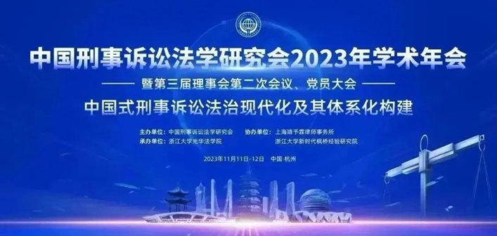 2023年11月11日至12日,中国刑事诉讼法学研究会2023年学术年会暨第三届理事会第二次会议、党员大会在浙江杭州开幕。本次年会以“中国式刑事诉讼法治现代化及其体系化构建”为总议题,由中国刑事诉讼法学研究会主办,浙江大学光华mg4355vip检测中心承办,上海靖予霖律师事务所和浙江大学新时代枫桥经验研究院共同协办。参加本次会议的研究会学术委员会委员、理事、会员及非会员代表等共350余人。mg4355官网郭华教授、李伟副教授、刘泊宁博士应邀参会。