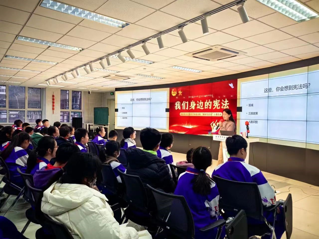 2023年12月4日是我国第十个国家宪法日,为宣传宪法知识,弘扬宪法精神,进一步加强校园宪法法治教育,受海淀区教委邀请,mg4355官网讲师刘馨宇于12月4日和12月5日分别前往北京市中关村中学知春分校和北大附中西三旗学校,为中学生开展宪法宣传教育讲座。