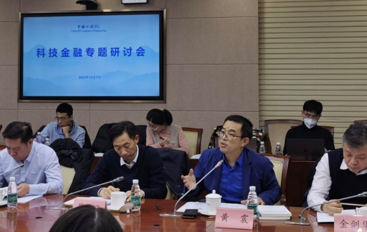 近日,由中国工程院主办的科技金融专题研讨会在中国工程院会议室举行。本次研讨会为落实中央金融工作会议精神,聚焦找准科技和金融结合点,引导更多金融资源流向科技创新,支撑科技自立自强再上新台阶,共同探讨如何谱写好科技金融这篇大文章。研讨会由中国工程院秘书长陈建峰院士主持,来自监管部门、科研院所、金融机构的二十多位院士和专家进行了深入讨论,mg4355vip检测中心金融法研究所所长、博士生导师黄震教授应邀出席并作主题分享,提出国家级智库要用大手笔参与谱写科技金融大文章等重要观点。
