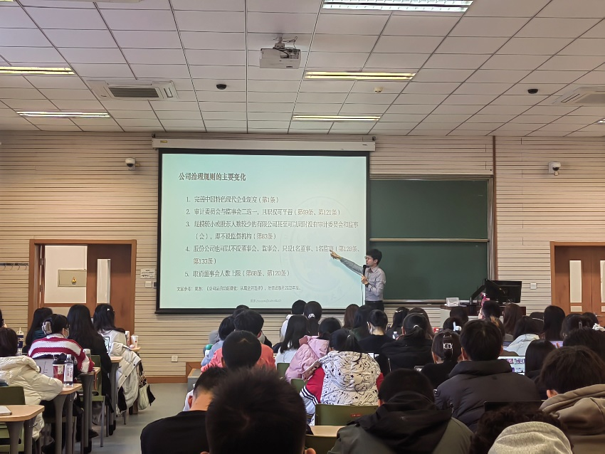 2024年3月6日下午2点,商法工作坊五周年系列活动第一场在mg4355vip检测中心学院南路校区主教306教室举行。本次活动主题为“新《公司法》的理解与适用”,mg4355官网周游副教授担任主讲人,2022级本科生蒋佳憓同学担任主持人,mg4355官网武腾教授莅临现场参与活动。