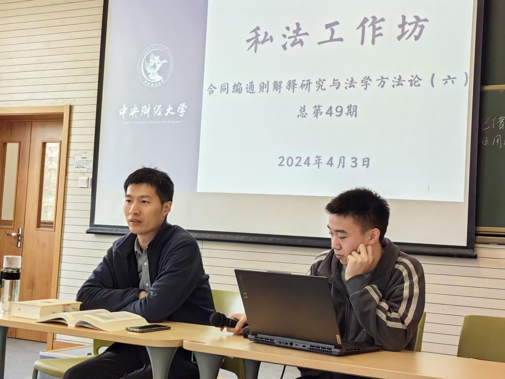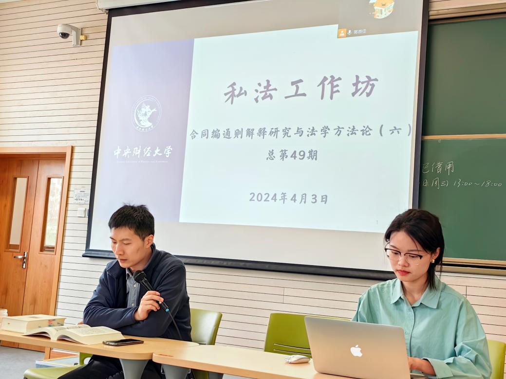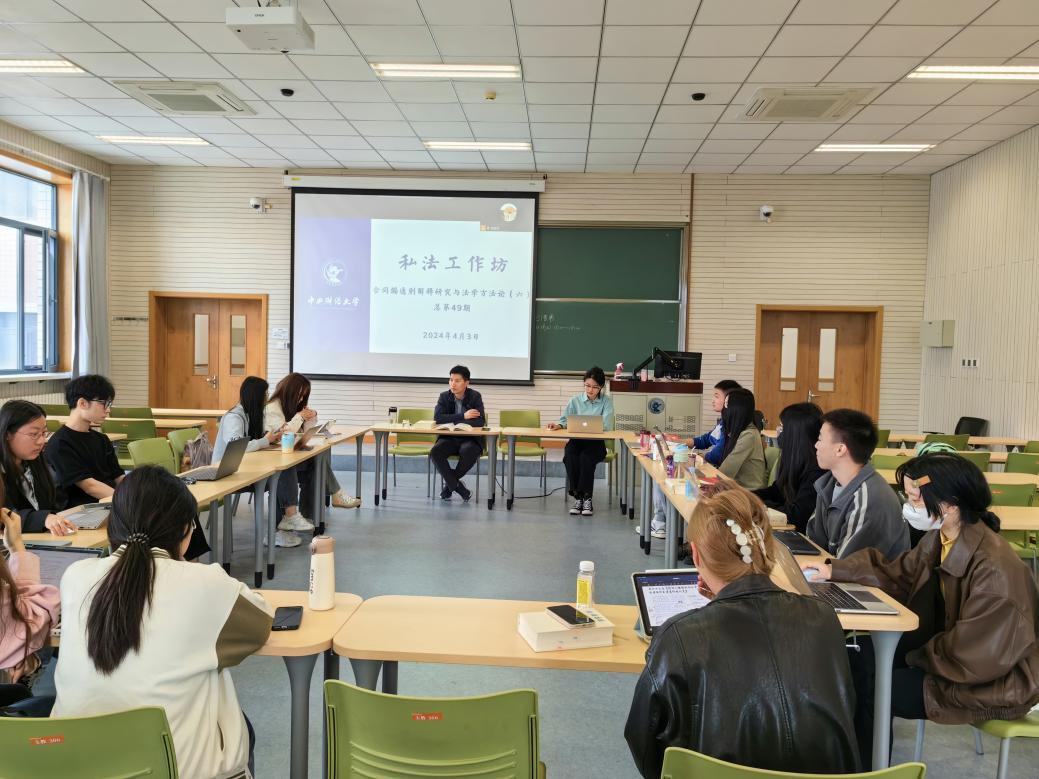 2024年4月3日下午14时至17时30分,mg4355vip检测中心第49期私法工作坊在学院南路校区主教306如期举行。mg4355官网武腾老师和二十余名本科生、硕士研究生共同研讨了《民法典合同编通则司法解释》第42条至第49条的内容,并研读了《法学方法论》第四章的内容。钟云昌、宋雯萱、马骁、唐思佳同学分享了对《民法典合同编通则司法解释》相关条文的理解,方睿婕、都可欣、赵超凡、蒋蓓佳同学汇报了阅读《法学方法论》相关内容的体会。
