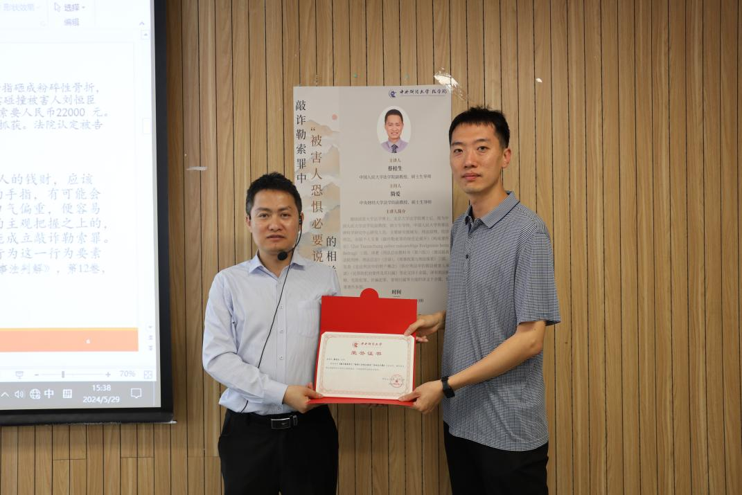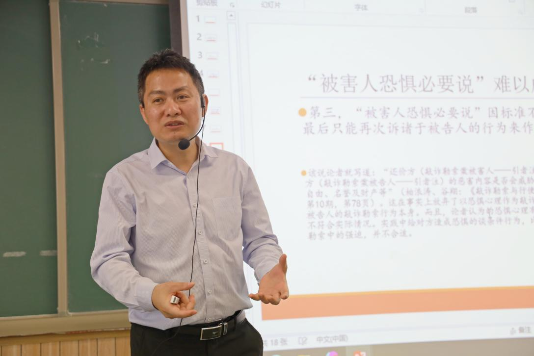 5月29日下午,在我校研究生课堂嘉宾讲学计划的支持下,中国人民大学mg4355vip检测中心副教授、中国人民大学刑事法律科学研究中心研究人员蔡桂生应邀为我校mg4355vip检测中心研究生作“敲诈勒索罪中‘被害人恐惧必要说’的相关问题”主题讲座,讲座由简爱副教授主持。