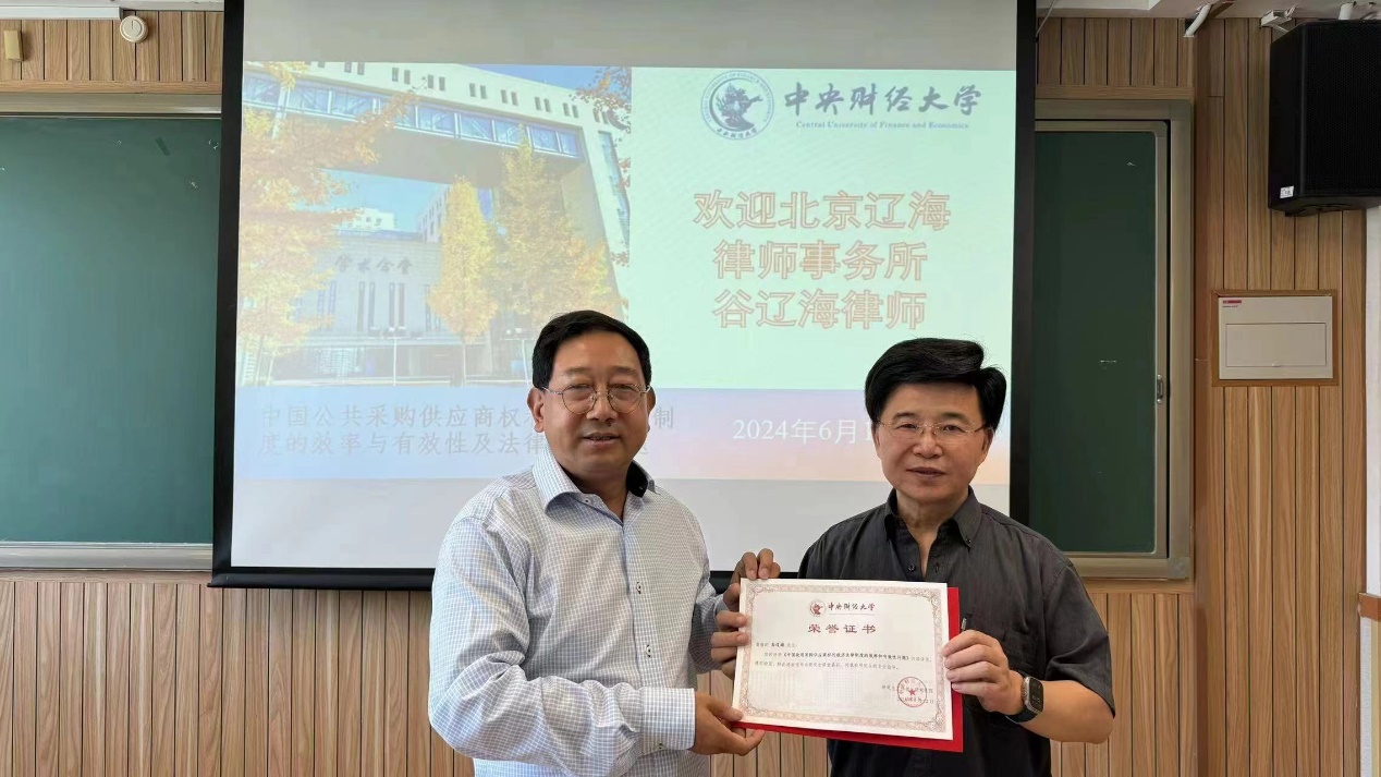 6月12日上午,在我校研究生课堂嘉宾讲学计划的支持下,北京辽海律师事务所主任谷辽海律师为我校研究生作题为“中国公共采购供应商权利救济法律制度的效率与有效性及法律改革问题”的专题讲座。mg4355vip检测中心曹富国教授担任主持人,张小平副教授、王世杰讲师担任与谈人。mg4355vip检测中心曹晓燕教授、国际合作处郭枫副处长参加了讲座。