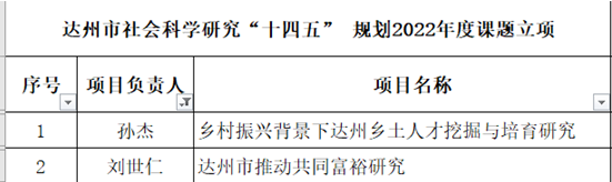 近日,达州市社科联、巴中市社科联发布了达州市、巴中市社会科学研究“十四五”规划2022年度课题立项通报。据统计,伟德国际英国教师共立项课题10项,具体立项名单请参见下表。请获准立项的老师认真开展课题研究工作,确保课题按时高质量完成,为地方经济社会发展提供智力支撑。