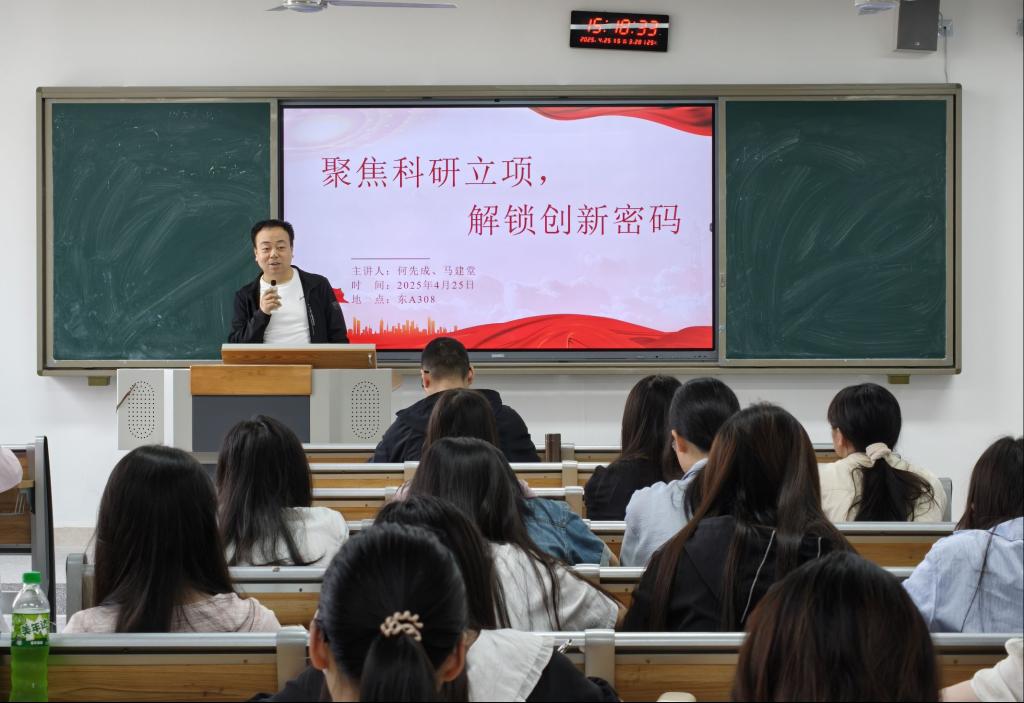 为激发学生科研创新活力,提升学术研究能力,2025年4月25日下午15点,一场主题以“聚焦科研立项,解锁创新密码”的科研立项指导会在莲湖东区A308顺利开展。学院副院长何先成、党政办公室主任马建堂出席会议,伟德国际官网学子到场聆听讲座。