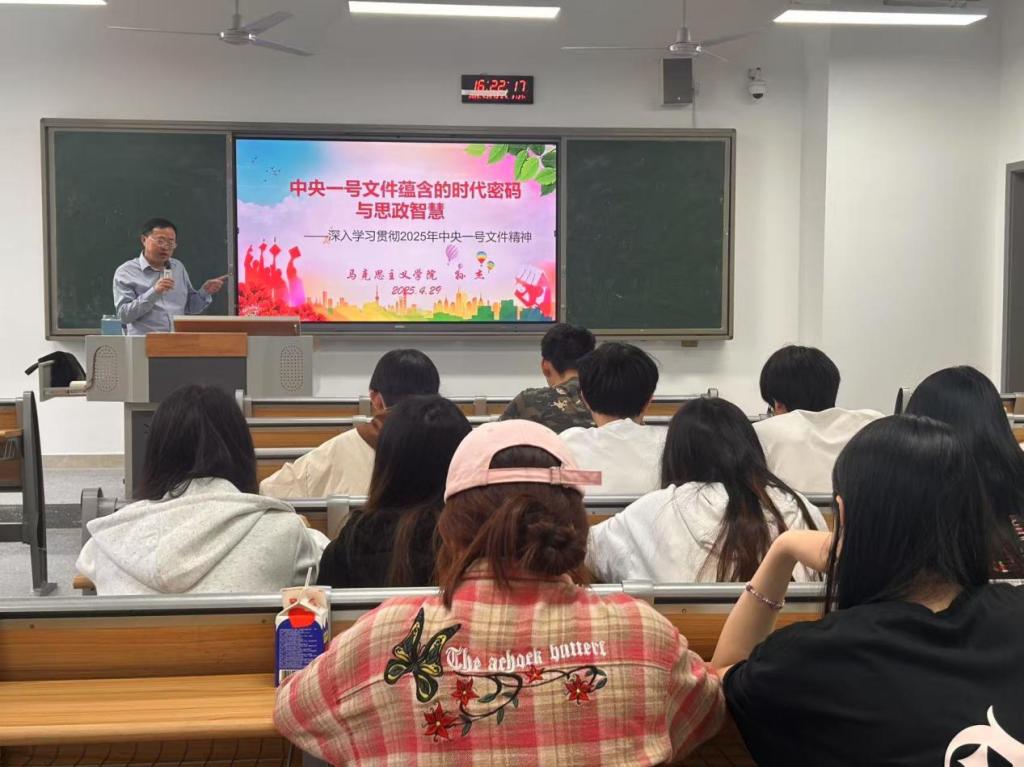 孙杰教授从中央一号文件的时代脉络与深远意义、中央一号文件的显著特征与时代内涵、中央一号文件的主要内容、中央一号文件蕴含的时代密码与思政智慧以及青年大学生的责任担当这个方面进行了详细阐释。他认为2025年中央一号文件具有高瞻远瞩的战略性、全面系统的政策性、精准施策的针对性、与时俱进的创新性以及循序渐进的阶段性等特征。今年一号文件主要内容体现在“两个持续”和“四个着力”等方面。高校教师要在培育“知农爱农”时代新人中担当作为,青年大学生是推动乡村振兴战略实施的重要力量,能够为农村发展注入新的活力和智慧,他鼓励青年大学生要努力学习专业知识,关注国家大事,用自己的智慧和力量为“三农”事业的发展添砖加瓦,在实现中华民族伟大复兴的征程中书写属于自己的壮丽篇章。