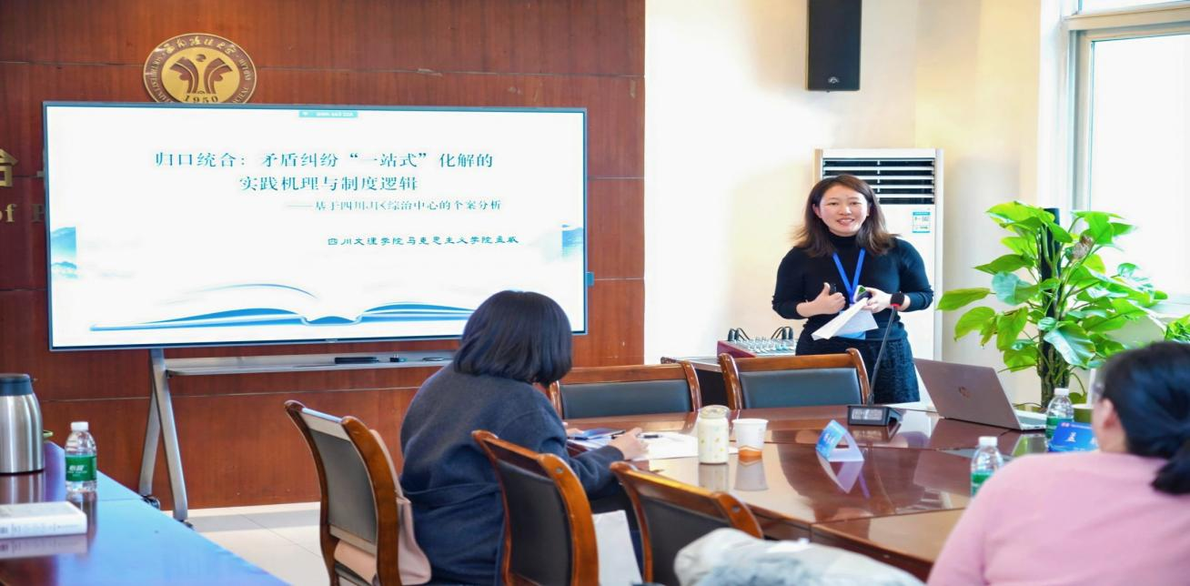 本次研讨会由西南政法大学主办,政治与公共管理学院承办,聚焦社会工作与新社会组织领域前沿动态与核心议题,设置主旨报告与平行论坛环节,为学术成果分享、思想碰撞搭建优质平台。在平行论坛“社会工作与社会治理”研讨中,孟威老师以《归口统合:矛盾纠纷“一站式”化解的实践机理与制度逻辑——基于四川J区综治中心的个案分析》为题作发言,系统阐述相关研究成果。