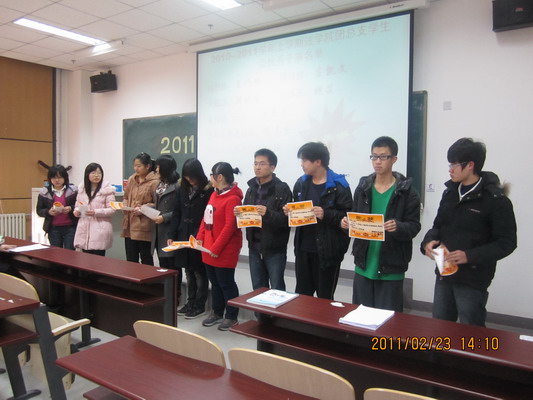 2011年2月23日下午,mg4355官网在主教210教室召开全体团学干部会议。会议由团总支组织部负责人武静同学主持,团总支书记李炎老师出席本次会议。