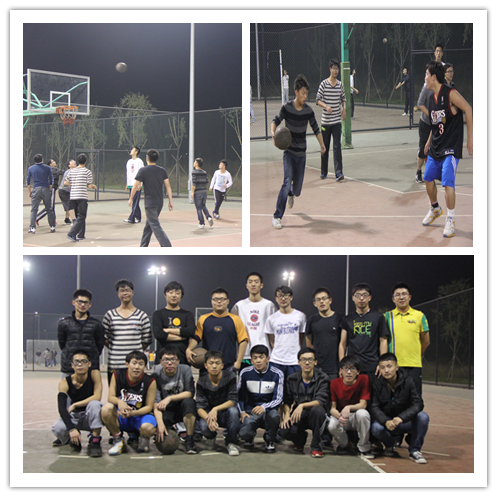 篮球队招新的主要形式为老队员与新队员的全场对抗赛,新老队员五五分组。老队员在球场上非常默契地配合,积极地跑位,认真地防守,给前来招新的同学带来了严峻的考验。不过新同学也不甘示弱,竭尽全力拼搏,篮板、快攻、断球,精彩不断。参赛的每一位新同学们都非常认真,不放弃每一个篮板,每一个空位,尽情地把汗水挥洒在他们热爱的篮球场上。他们团结协作,各司其职,博得了现场老队员的一致好评,来自西藏自治区的扎西加措同学在比赛中更是表现突出,连连的进球博得了现场观众的热烈掌声。8点30分左右,本次招新篮球赛落下帷幕。最后,篮球队新老队员们相互之间进行了球技交流,并进行了合影留恋,现场气氛甚是融洽。