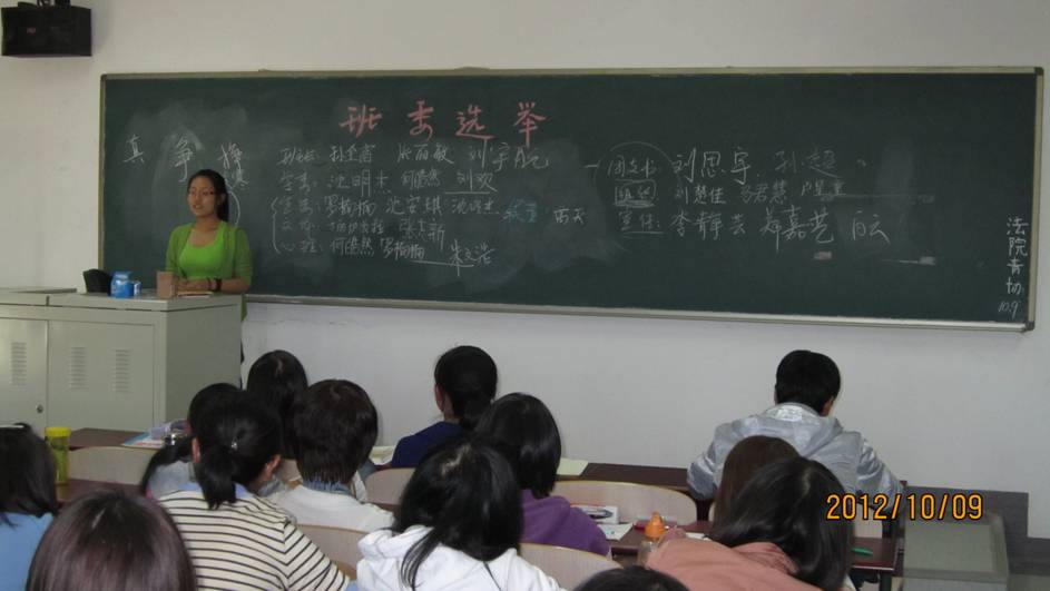 10月8日至10月9日,2012级mg4355vip检测中心的3个班在分别沙河主教507、509举行了各自的班委选举。本次班委选举,由辅导员李杰老师主持,3个班的全体成员和各自的班级助理到场参与了本次选举。