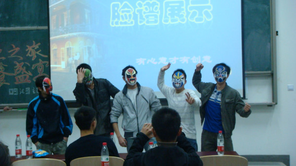 活动在团支书颜慧平同学播放了一段同学们前往中国戏曲学院学习京剧舞台动作和画脸谱的视频后拉开序幕。在“知识竞赛”环节中,通过对兼具趣味性和专业性的问题的抢答,同学们了解了许多有关京剧的知识。随后,同学们戴上自己精心描绘的京剧脸谱上台展示,中国戏曲学院的同学们则展示了他们的专业技能,唱念做打,精彩纷呈,赢得了满堂喝彩。在互动环节中,几位同学还上台向戏曲学院的同学们学习了舞棍和唱腔。活动在热情洋溢的气氛中圆满结束。