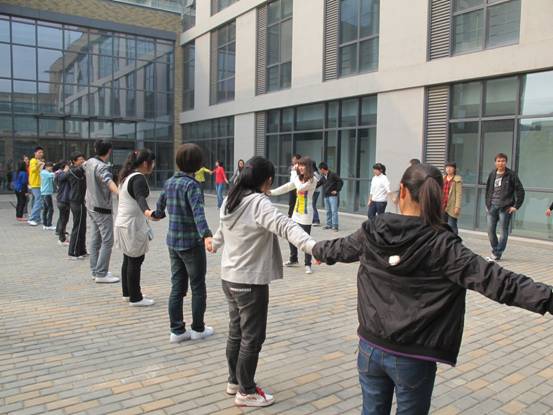 新生“破冰”交流会于7号楼教室准时召开,有记名字、猜词语、唱歌接龙等活动,也有室外集体游戏活动。其中也穿插有方言展示、反串表演、真情对白等惩罚环节。游戏分小组进行,使大家在一个小组内相互认识,相互协作,增强团体意识。交流会伊始,11级的同学们就通过“记忆滚雪球”、“记忆大考验”等乐趣横生的游戏打破了僵局,增进了对彼此的了解;方言展示、反串表演等惩罚环节本意在激励同学们积极参与游戏,“唱歌接龙”进一步拉近了同学间的距离,将“破冰”活动推向了高潮。在户外进行的集体游戏中,同学们也是分小组活动,相互配合,增添了不少集体荣誉感。