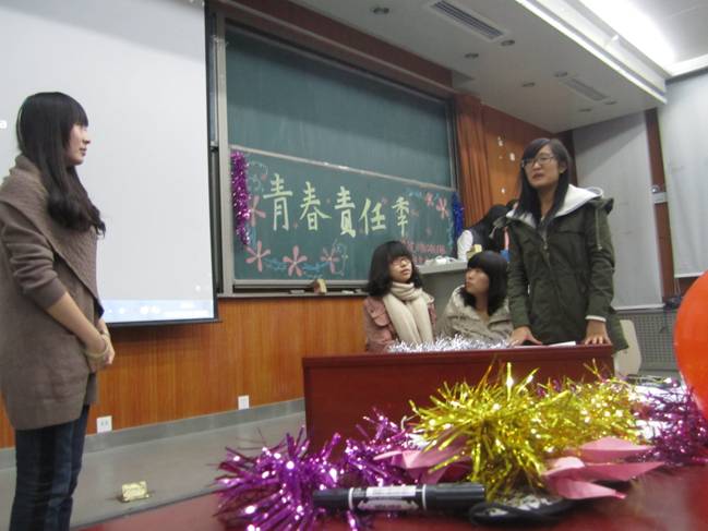 11月30 日下午6:20,11级、12级法学一班的建团90 周年的主题教育活动在3号学院楼222顺利进行。本次活动以模仿“年代秀”形式,分四组选手,分别代表抗战建国、建设时期、改革开放、现代四个时期。并以此四个时期模范人物事迹为例阐释不同的责任内涵。活动以突显“责任”为主题,在献礼建团九十周年同时,重在唤醒青年责任意识,投身社会,投身国家现代化建设。
