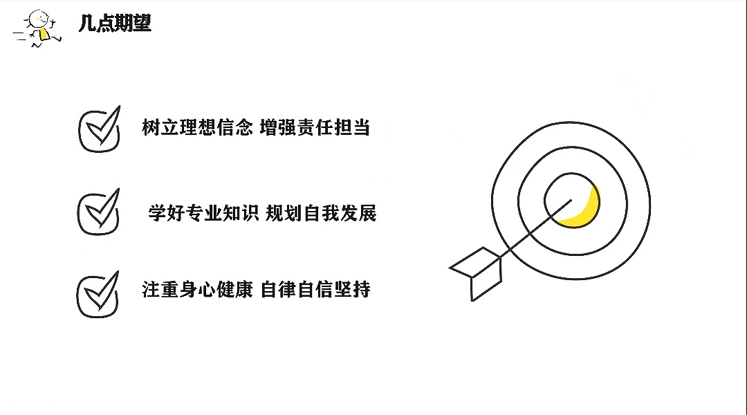 结合疫情期间同学们的学习和生活情况,围绕理想信念与自我发展,张瑞佳老师要求同学们遵守学校有关疫情防控的相关规定,按时准确打卡,积极配合防疫工作。在注意自身安全的同时,也要增强责任担当。另外,同学们要积极适应线上教学,合理安排时间,学好专业知识,做好自我发展规划。最后,张瑞佳老师希望同学们注重身心健康,做到自信自律,坚持不懈。