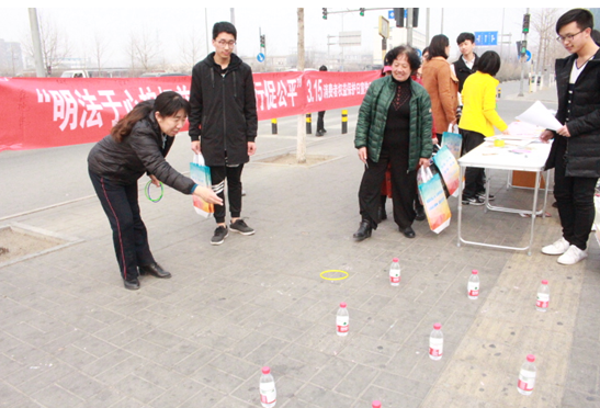 民事法律规范与每位公民的日常生活都会产生息息相关的密切联系,与商品社会相伴而生的逐利思想所引发的消费欺诈行为,对于消费者权益的保护力度提出了更高的要求。为了确保受众主体树立对法律的信仰、牢固树立权利意识,在寻求公力救济的同时,增强自身运用法律武器维护个人财产权利的本领,同学们通过设计精美的宣传册、填字游戏、“飞行棋”等群众喜闻乐见的形式,为参与到活动当中的市民普及消费者权益保护相关法律法规,并就社会公众关心的消费维权程序和诉讼程序进行了耐心细致的解答。创意与内涵并存的宣传活动,在吸引大众眼球的同时,也使参与到活动中的市民朋友对消费者权益保护理念、原则和具体法律规范形成了初步的理解。