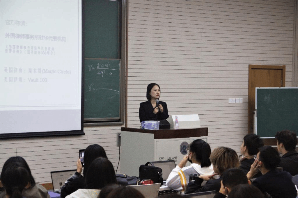 覃莹校友围绕“国际律师事务所简介”、“国际律师事务所招聘要求”和“如何规划大学生活”三方面展开了本次讲座。讲座伊始,覃莹校友首先列出了国际著名律师事务所并对其进行了简单介绍。随后,她从内、外资所合伙人分红制度视角出发,分析了内资所与外资所的差异和利弊,引发了同学们对于两类律师事务所的深入思考。紧接着,覃莹校友表明在外资所就职能够获得完整的培训,而在内资所就职则能够及时获取更具挑战性的前沿案件。同时,她指出在工作制度方面外资所较为看重过程的规范化,而内资所则更注重结果的完成度。此外,覃莹校友还点明诉讼律师和非诉律师的区别主要在于能力要求的不同。在诉讼业务上,诉讼律师的业务核心在于对法律的解释,而非诉律师的业务核心则是在符合法律法规的情况下有目的地实现商业诉求的最大化。