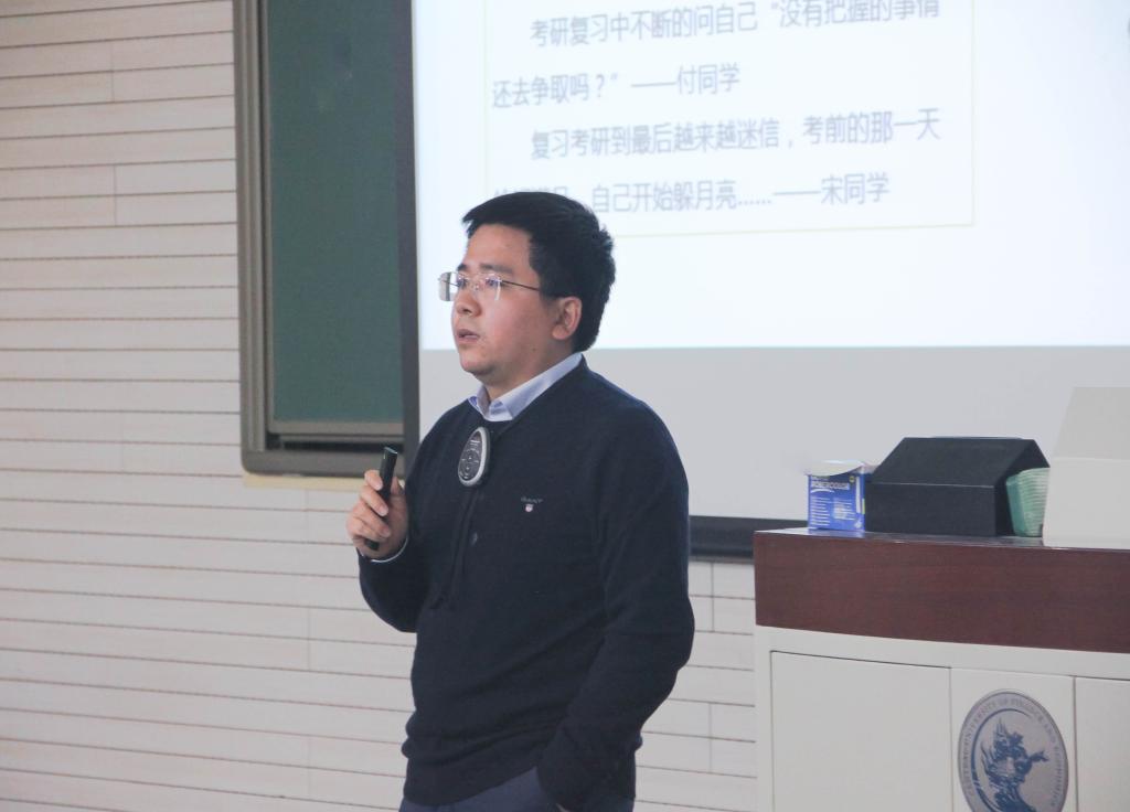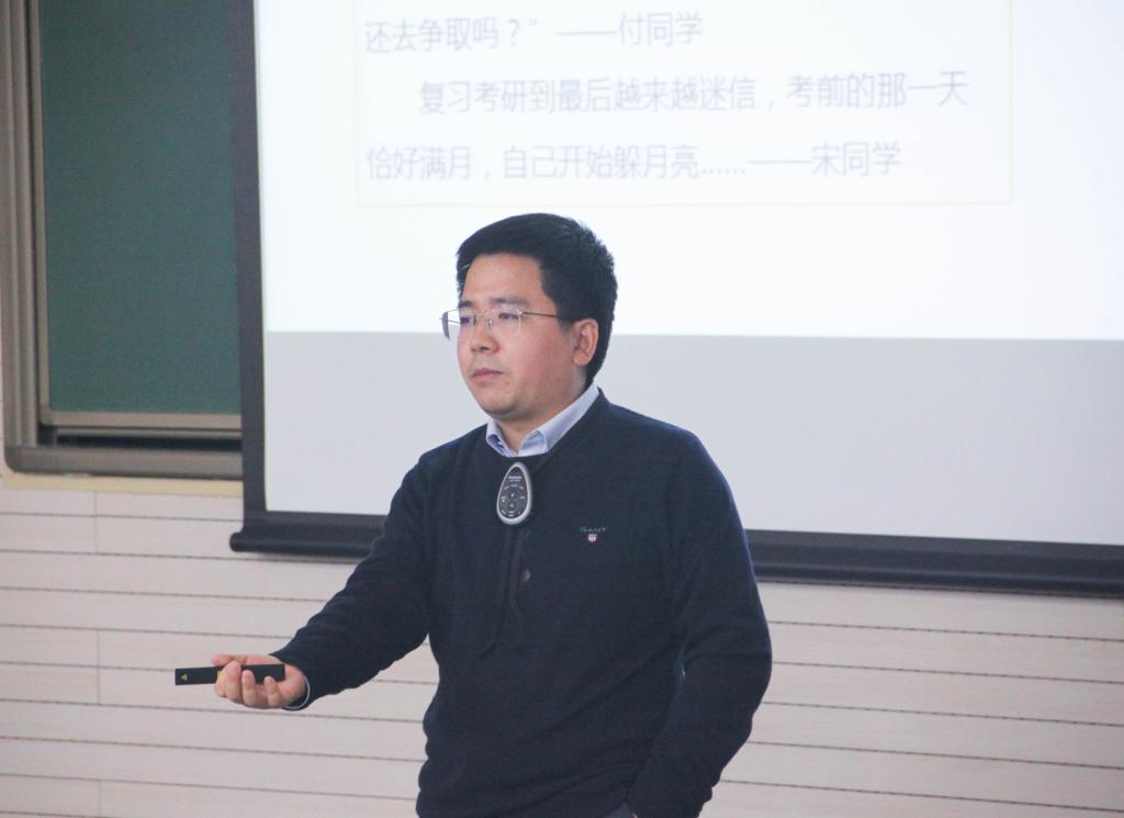在探索外部世界部分,吴老师介绍了继续深造和求职工作等两个发展方向以及同学们可能存在的一些不合理信念并告诫同学们应理性地选择适合自己的道路。