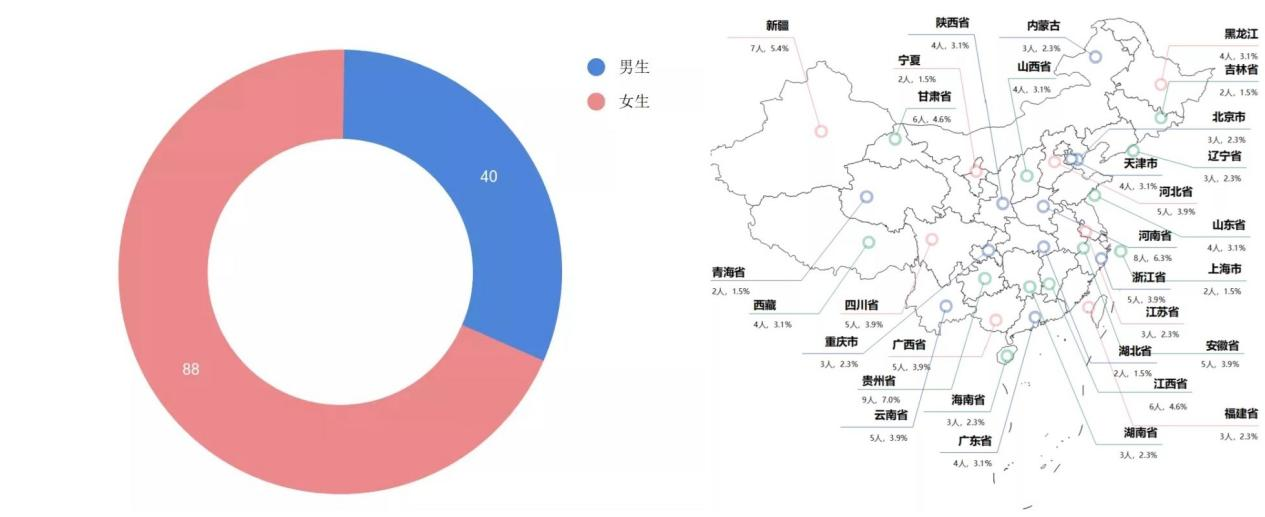 为更好了解2021级本科新生的情况,mg4355官网还就男女生比例、民族和地区分布等进行相关的数据调查分析。