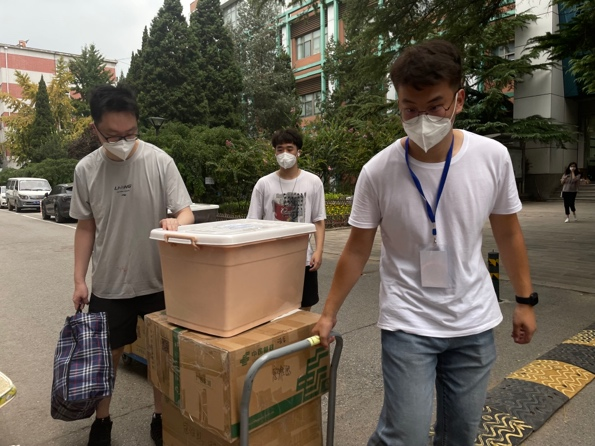 早上八点,研究生新生们陆续来到报到现场。负责迎新的同学们各司其职,帮助新生们迅速依次完成线上报到和照片上传、录取通知书和证件核验、报到材料领取,并向新生讲解注意事项。除此之外,帮忙搬运行李的志愿者也随时待命,每当看到提着行李的新生走近,他们都会主动上前接过行李,并帮忙搬到宿舍。报到现场有条不紊,高效进行。