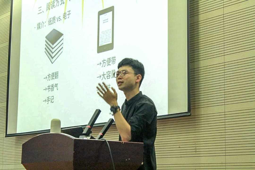 讲座开始,周游副教授首先列出了关于同学们阅读情况的相关调查数据,并以此作为基础,针对当前社会阅读现况提出“如何读书”、“何为好书”、“有无必读书”、“为何读书”等一系列问题。随后,他结合自身经历分享自身观点,向同学们传授经验。周游副教授独到的观点、幽默风趣的演讲风格,激发了同学们对“阅读”这一话题的兴趣及思考。